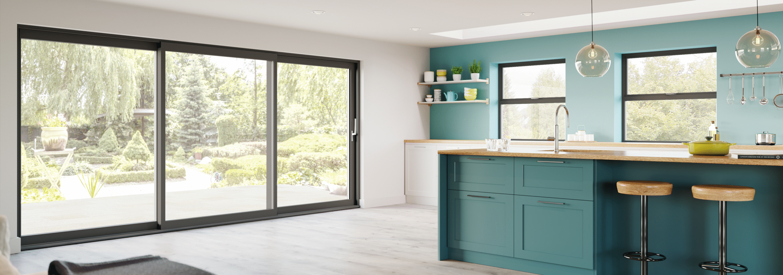 • Ultra-slim sightlines – Stellar is one of the slimmest aluminium systems available, giving a higher glass-to-frame ratio for brighter, lighter interiors and a contemporary look.
